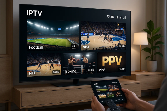 Mit IPTV Sport genießen Sie Live-Sport, TV-Sender, Filme und Serien in HD und 4K mit stabilem Streaming auf allen Geräten.